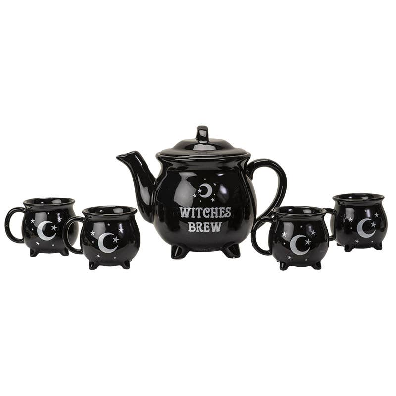 Witches Brew Black Teapot Set Teapot with 4 Mugs