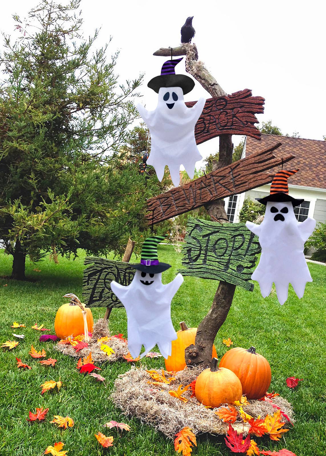 Halloween Hanging Ghost with Witch Hat Outdoor Decor