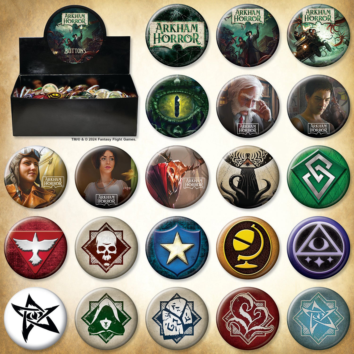 Add a touch of eldritch charm to your collection with our Arkham Horror button Assortment! Each button features unique designs inspired by the beloved board game, depicting iconic characters, symbols, and scenes from the Lovecraftian universe. When you purchase one of these buttons, you won't know which design you'll get until it arrives- adding an element of mystery to your order! Perfect for fans and collectors alike, these buttons are a great way to show your love for Arkham Horror. Which one will you get? the only way to find out is to order now!