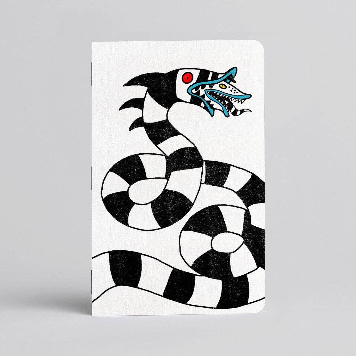 Write, sketch, and plan in your own one of a kind, Sandworm Notebook from the great classic Beetlejuice! "It's SHOWTIME!" A great gift for any time of the year. Iconic creature from everyone's favorite horror-comedy, Beetlejuice! We included little details inspired from the film, such as a belly band wrap with The Neitherworld Waiting Room Number. Of course we all know he weaseled his way into getting Number 4 in line! Bring this unique notebook along everywhere you go for all your note taking needs! 5 x 7" 48-page Single • 80lb card stock covers • 28 lb text inner pages • Designed, printed and assembled in Austin, TX.