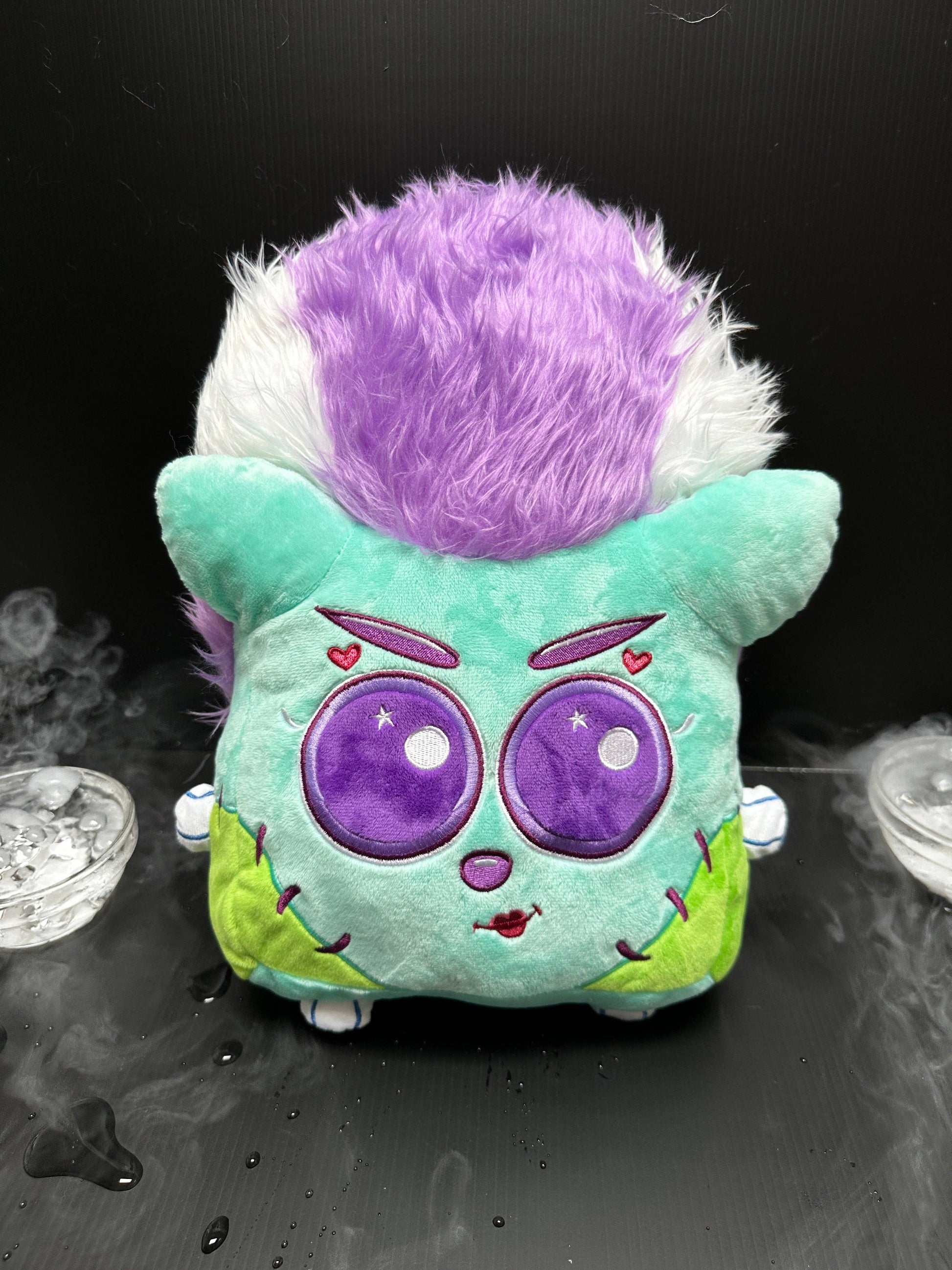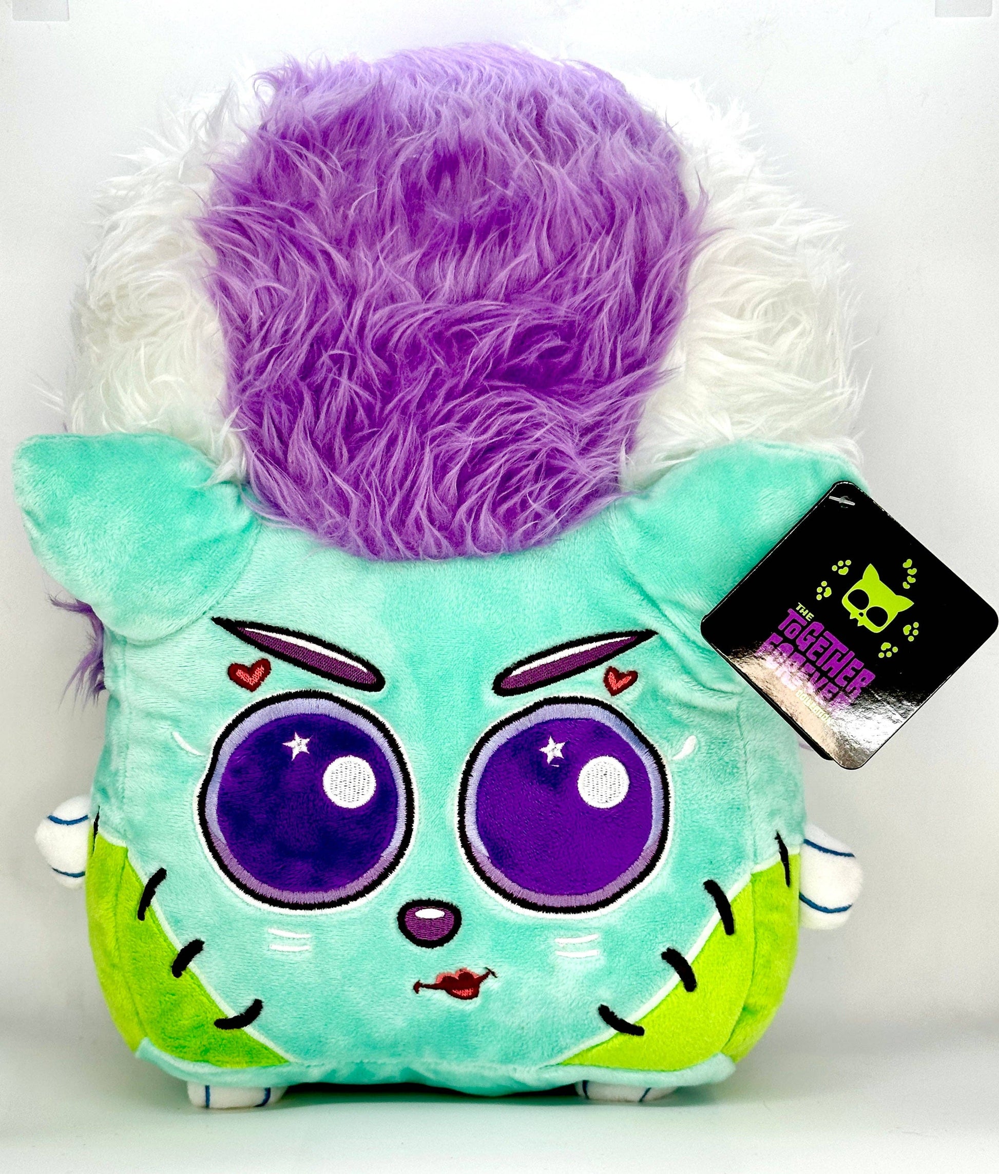 Bride of Frankenstein Pillow Plush or The Bride is a Squishy Squaredy Cat measuring over 10" wide and 17" tall from toe to the tip of her beehive!