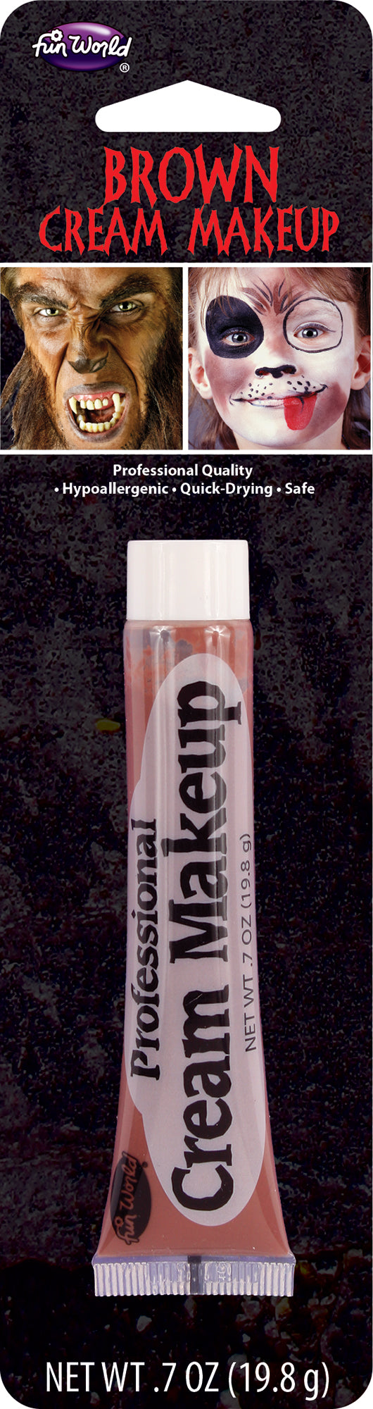 Enhance your Halloween makeup look with our .7oz Brown Makeup Cream. Our professional-quality cream provides a smooth and even application, creating a realistic and natural brown tone. Perfect for adding depth and dimension to any costume, this cream will help you stand out at your next Halloween event.