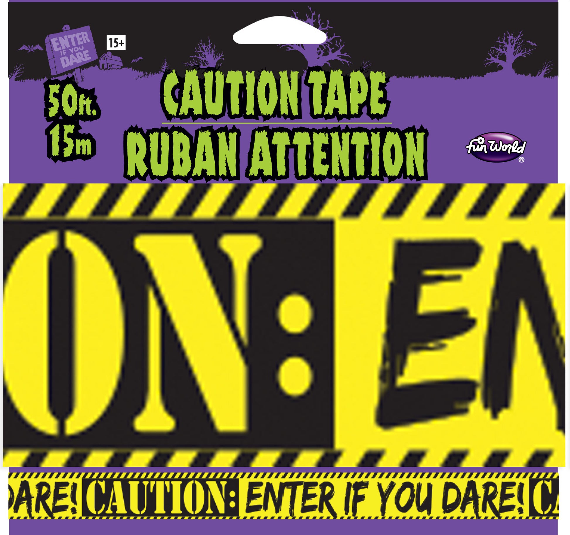 Wrap your space in eerie warning with this 50ft caution tape. Perfect for marking off haunted zones or creating spine-chilling boundaries, its bold design commands attention and sets a spooky scene. Durable and vivid, it’s your go-to for unsettling atmospheres and creepy events.