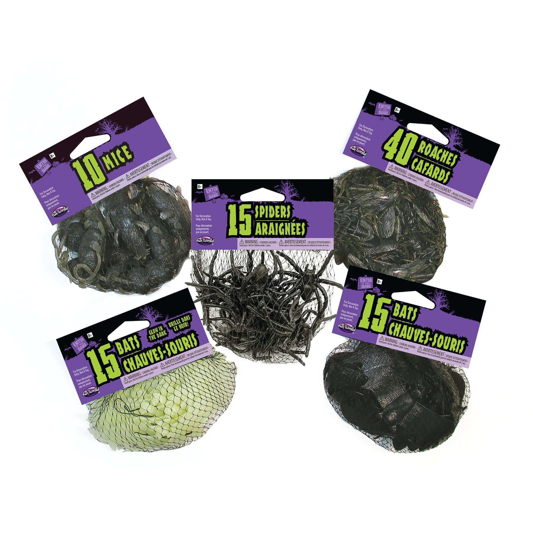 Scatter the Creatures in Mesh Bag—spiders, roaches, bats, and mice—throughout your Halloween scene for a truly haunting effect. Perfect for placing in spider webs or around dark corners, these creepy critters bring an eerie realism that will send shivers down your guests’ spines. Elevate your spooky décor with these unsettling details.