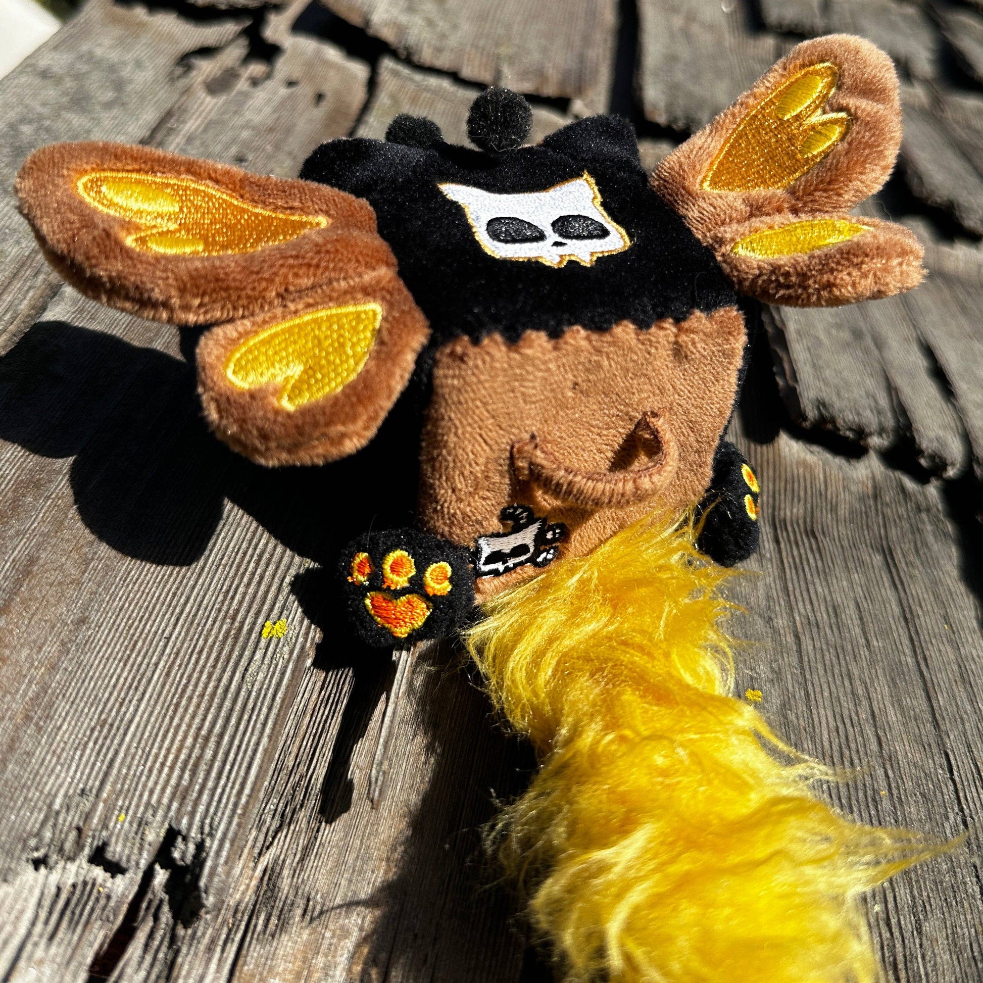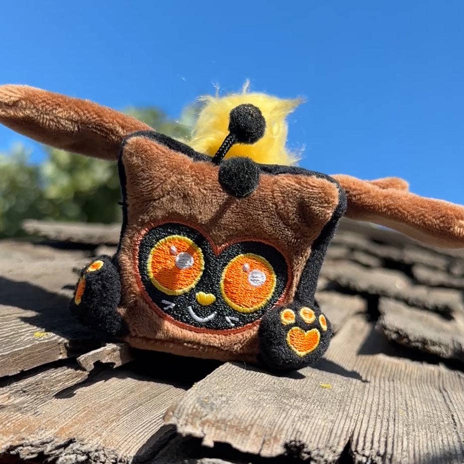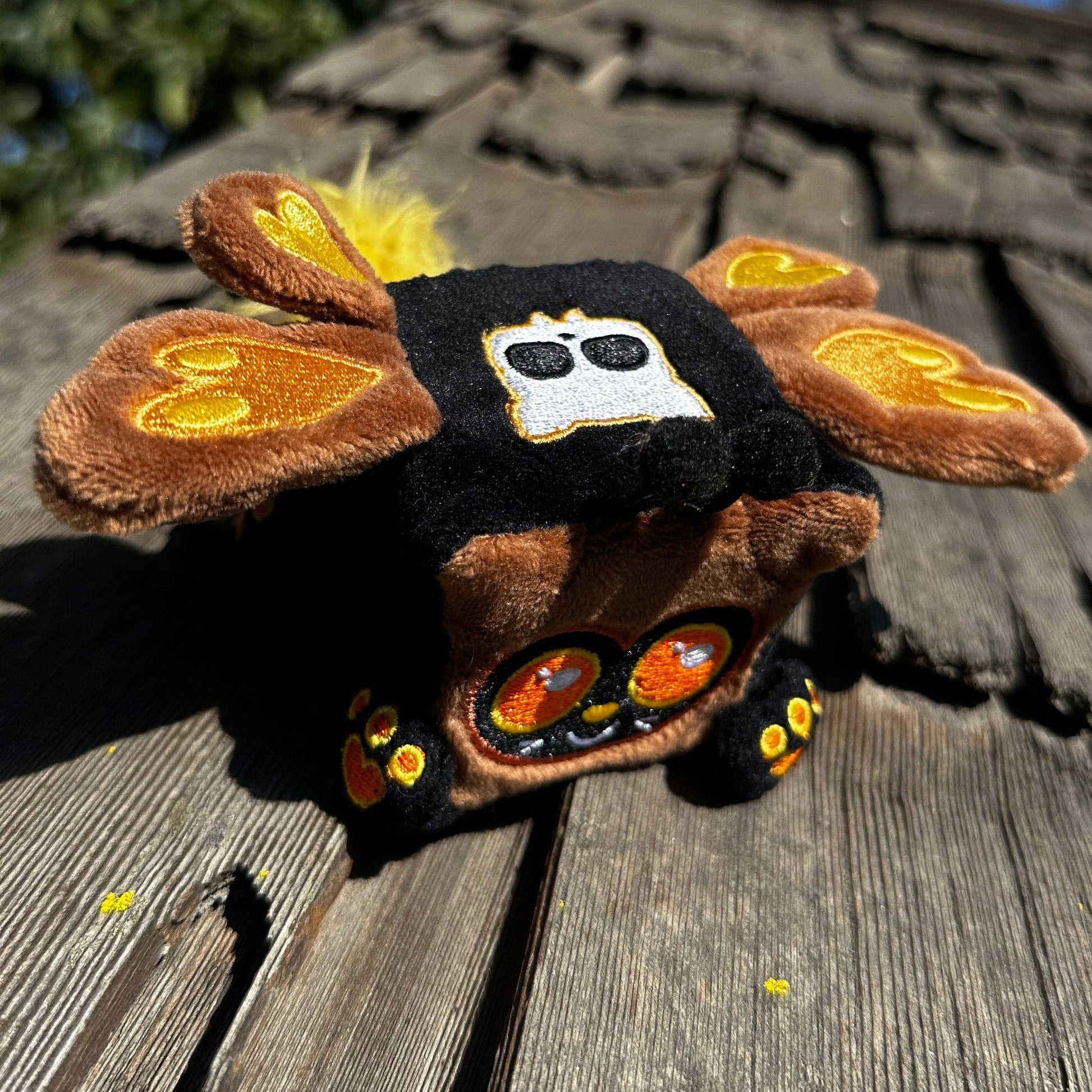 Deathshead Moth Baby smol (mini) plushie is a stylized plushie based on the famous moth from Silence of the Lambs stuffed with a 2" memory foam cube.