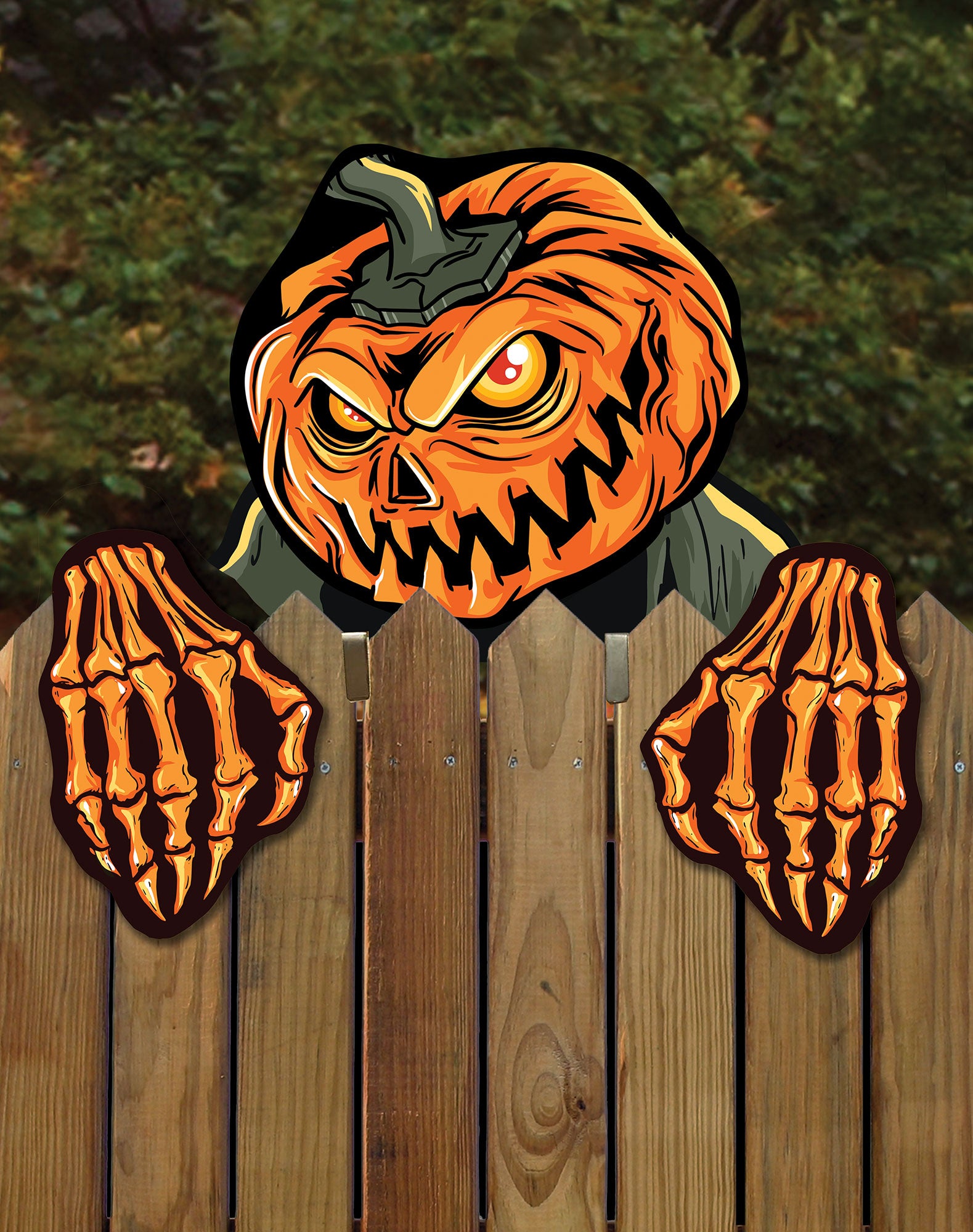 Bring eerie charm to your Halloween with the Fence Faces Decor. Featuring haunting pumpkin and reaper designs, this decoration transforms any fence into a spooky spectacle. Perfect for setting a chilling atmosphere that will captivate and unsettle your guests. Easy to install and sure to be a standout in your Halloween display.