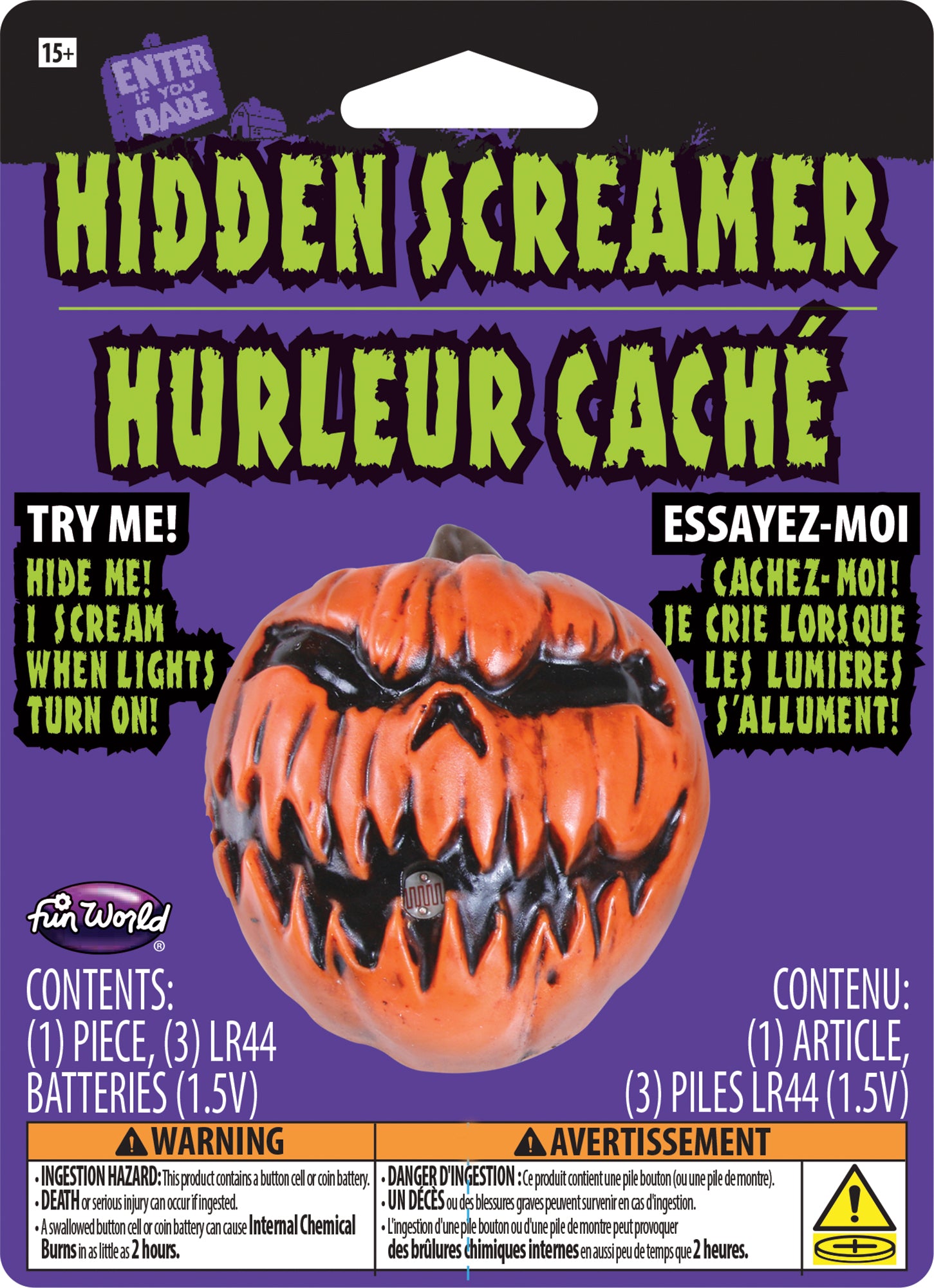 Unleash surprises with Hidden Screamers, featuring three chilling styles: Pumpkin, Skull, and Spider. Each one conceals a spine-tingling scream that activates upon light perfect for spooking friends and adding haunted fun to your decor. These unsettling prankers bring suspense and a jolt of fright, making every Halloween moment unforgettable.