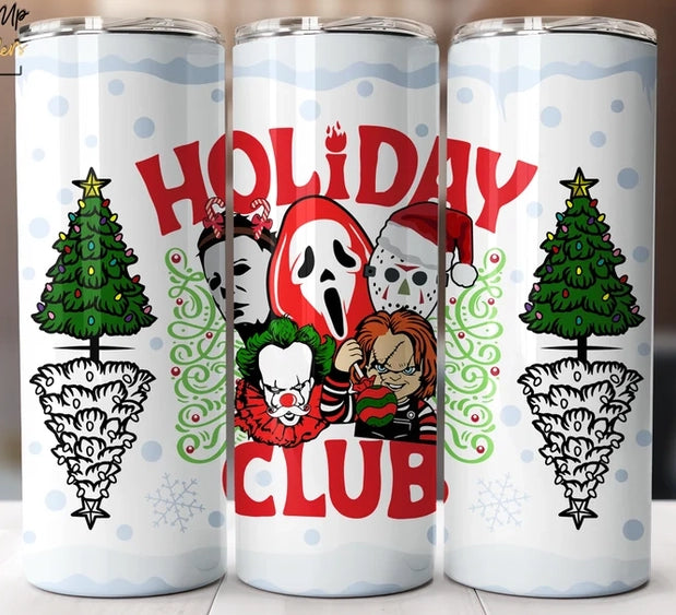 Get ready to scare up some fun with our Holiday Club Horror Tumbler! This 20 oz stainless steel tumbler features iconic horror characters. Perfect for keeping your drinks hot or cold on those spooky nights. Don't miss out on this killer accessory!