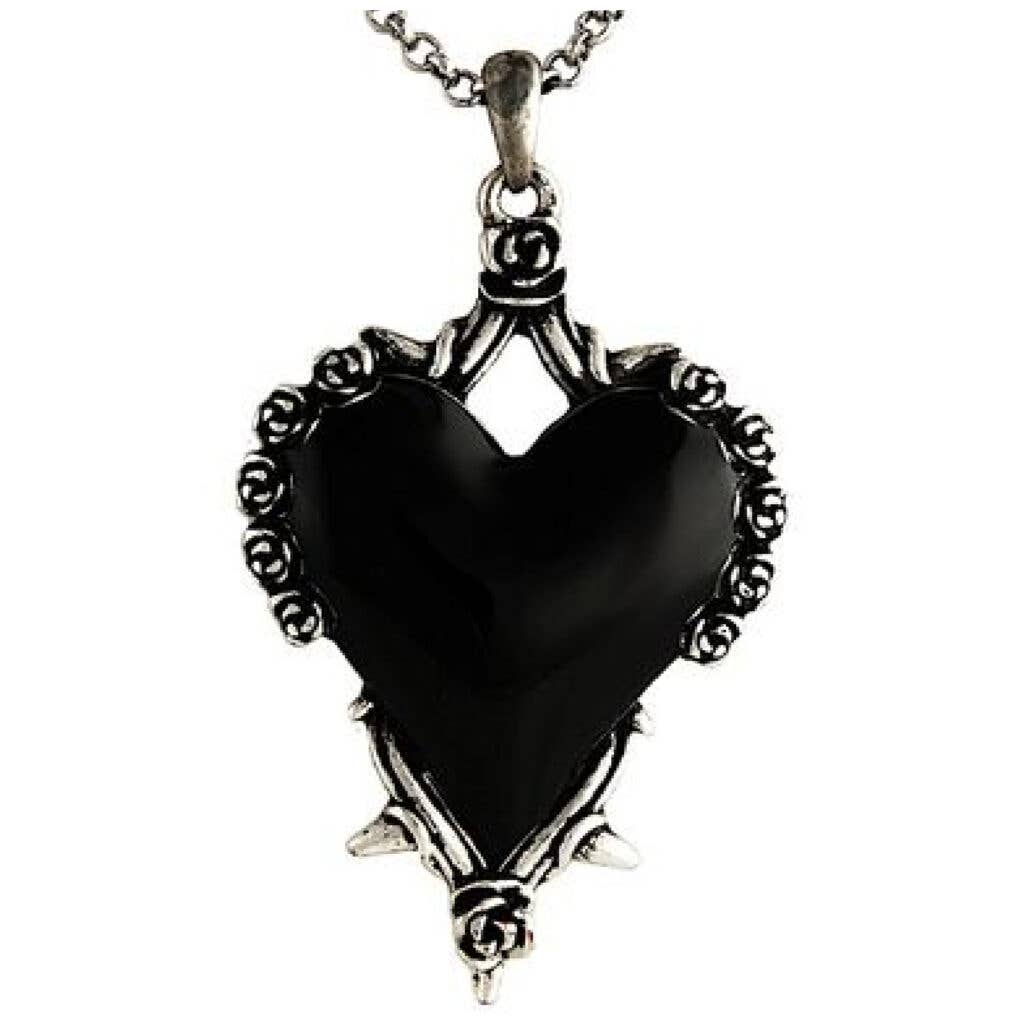This pendant charm necklace adds an edgy yet elegant touch to any outfit. With its distinctive design featuring a black heart surrounded by roses and thorns, it's a striking piece that effortlessly blends the romantic with the rebellious.