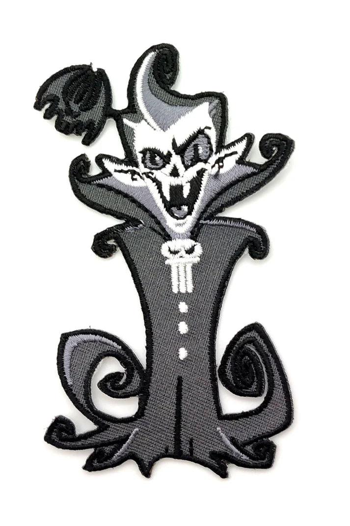 Conjure some vampire vibez with this psychobilly patch, designed to add some vampy + campy creeps to your clothes! With a rockabilly hairdo, fiendish fangs, killer collar, statement skull, and bat buddy by his side, Lil' Drac is dyying to haunt yer hoodie, vest... whatever your dark heart desires!