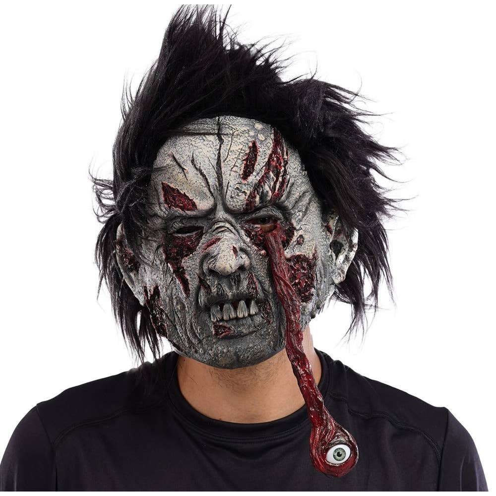Finally awoken from years of decay and despair, rises this haunting undead creature. Its eyeball hanging by a thread of skin, this really is a daunting mask and will be sure to creep all your friends out!. one size fits all. Full Head Latex One Size Fits Most