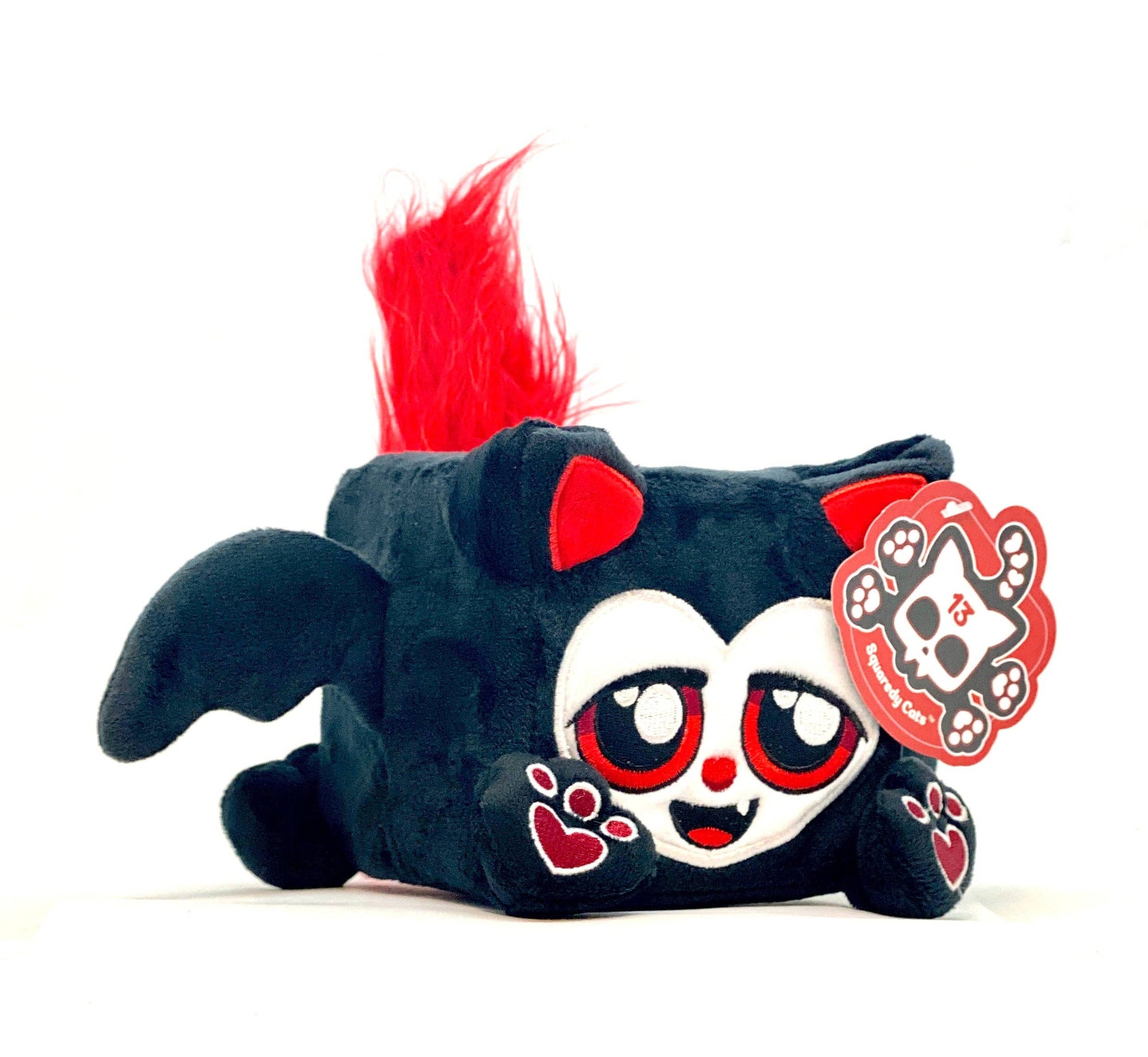 Lucky 13 plush is a plush square tuxedo bat cat from Squaredy Cats.