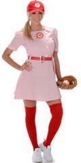 Channel your inner Georgia Peach with this hilarious Peaches Baseball Player Adult Costume! Inspired by the iconic character from "A League of their Own", this costume will have you hitting home runs in no time. Play ball in style and make your friends laugh with this quirky and fun outfit. Batter up!