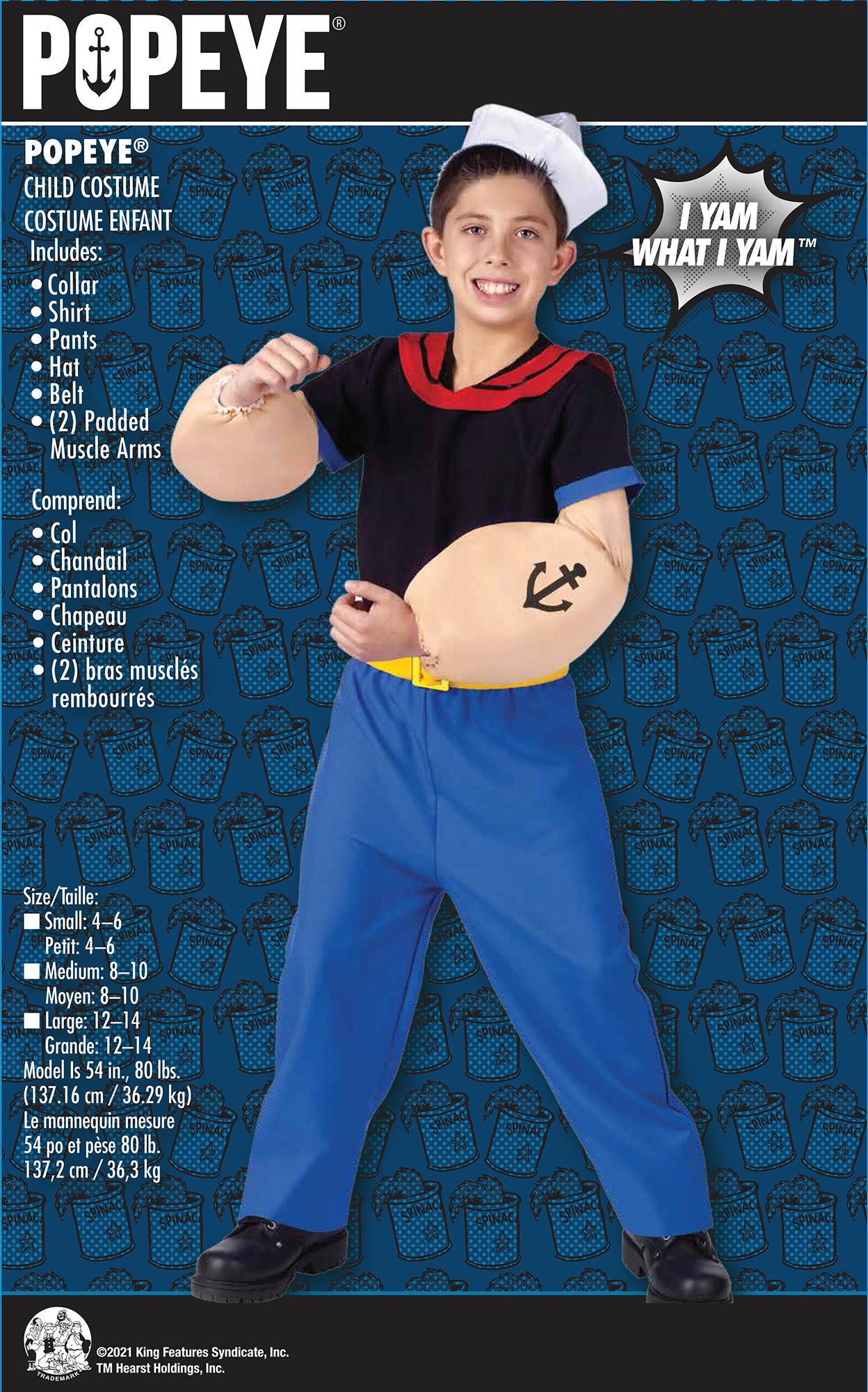 Get ready for your little one to become the beloved sailor man with this Popeye Child Costume. Featuring the iconic sailor hat and navy shirt, this costume is perfect for Halloween or any costume party. Made with high-quality materials, this costume is comfortable and durable for hours of playtime fun.