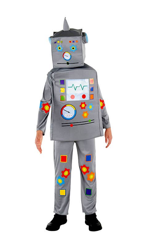 Product comes complete with: Jumpsuit, Tunic and Headpiece. Costume has assorted meter, knob and button designs. Square shape hat has a small cone shape on top. So realistic looking, it will make you want to see this little robot in action Material/Fabric: Polyester Department: Boys