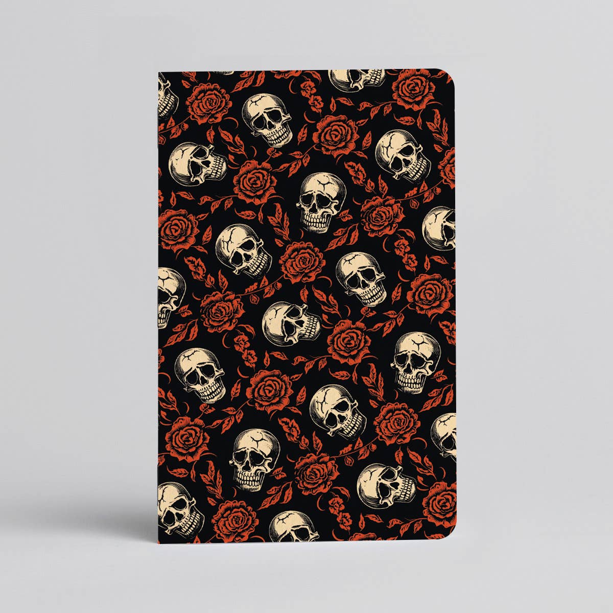 Embrace your inner mystique with the captivating skull and rose pattern adorning the cover. Whether jotting down thoughts, sketches, or secrets, this pocket sized notebook is your perfect companion for on-the-go creativity. Its compact size ensures it slips effortlessly into your pocket or bag, always ready to capture your inspiration whenever it strikes. Revel in the unique fusion of symbolism and style as you express yourself on every page of this intricately designed notebook. 48-page 5"x7" notebook Handmade in Austin, Tx