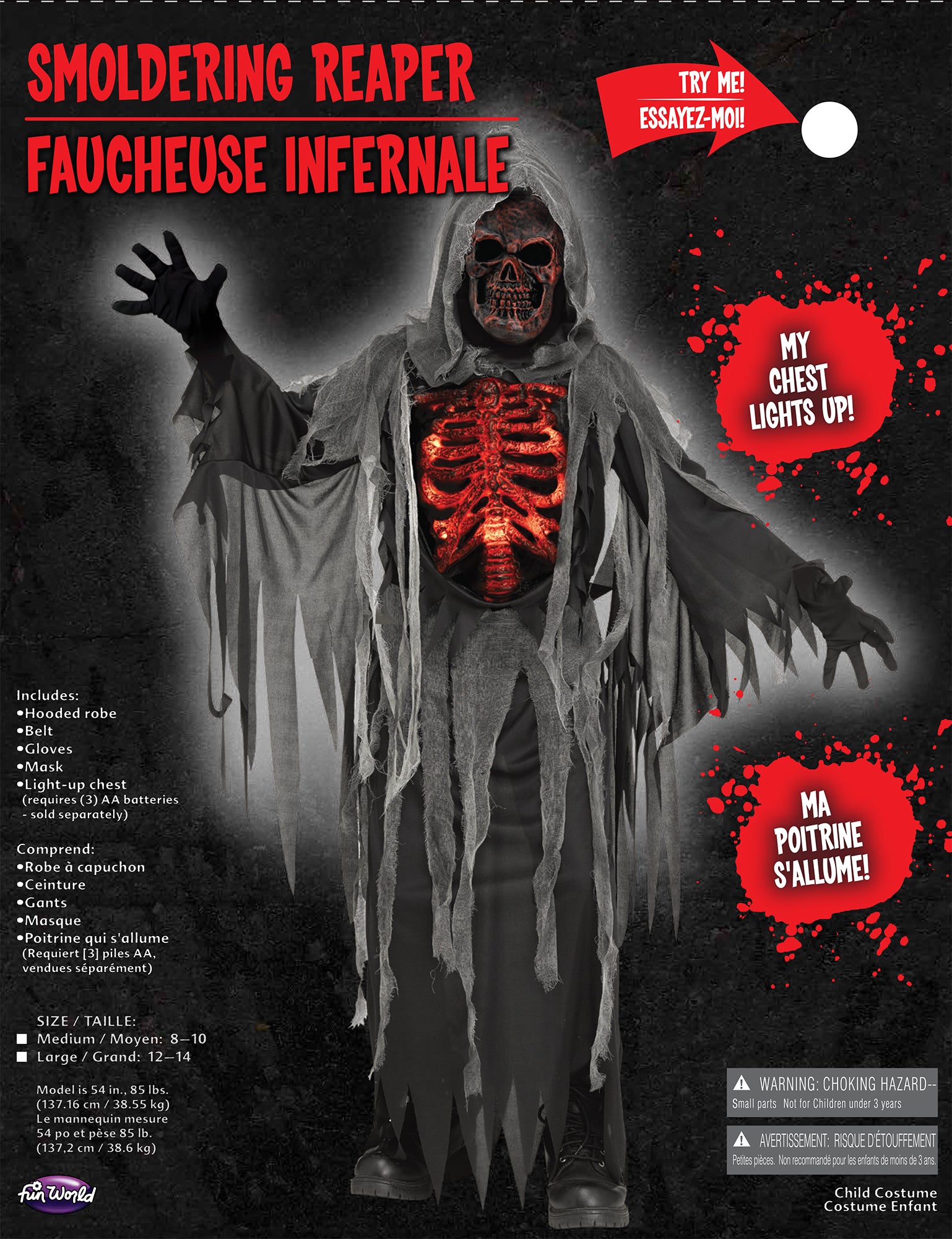 Unleash some fiery fun with the Smoldering Reaper Child Costume. Featuring a light-up chest and a smoldering design, this costume is perfect for stealing the show at any Halloween party. Get ready to be a hot commodity!