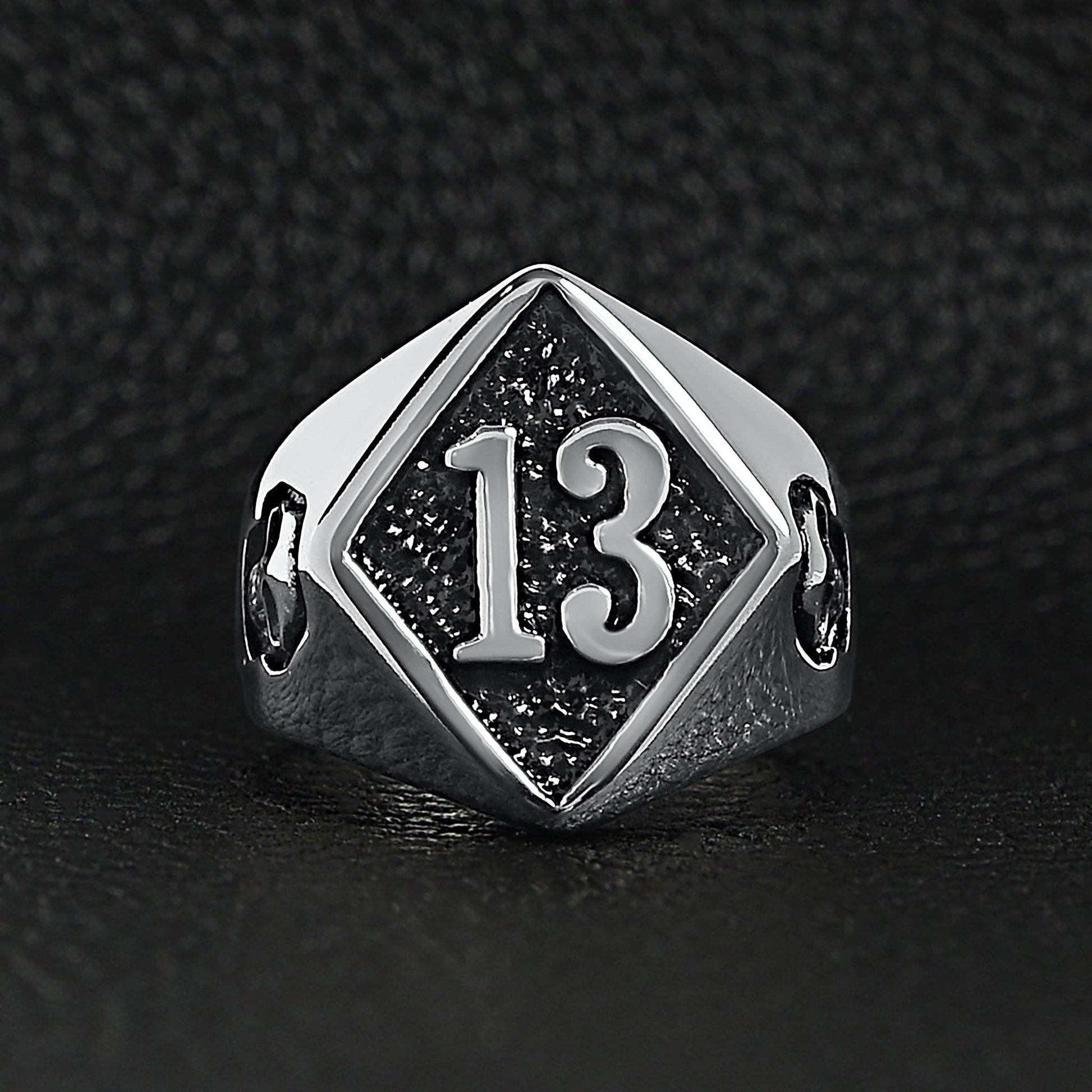 Stainless Steel "13" and Skulls Signet Ring