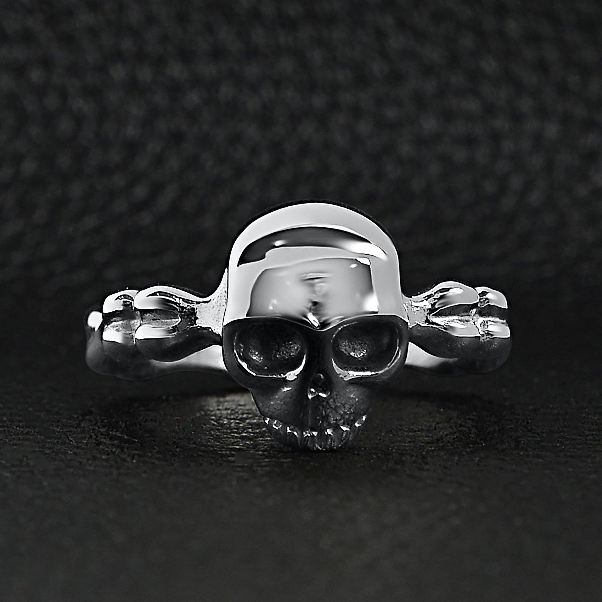 Stainless Steel Skull & Bones Women's Gothic Statement Ring